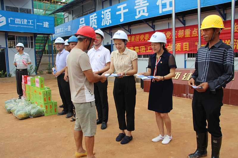 驕陽似火,酷暑難當(dāng)。隨著聒噪的蟬鳴,又迎來了今年的高溫季節(jié),為做好防暑降溫工作,保障重點(diǎn)工程和重點(diǎn)項(xiàng)目一線員工和項(xiàng)目建設(shè)者的健康權(quán)益,綠港集團(tuán)黨委和工會(huì)在7月4日分別來到綠港·云海灣、吳圩3號(hào)路、金凱工業(yè)園等9個(gè)重點(diǎn)項(xiàng)目和重點(diǎn)工程現(xiàn)場(chǎng),為奮戰(zhàn)在一線的職工和項(xiàng)目建設(shè)者們送去了絲絲涼意,獻(xiàn)上了一份誠摯的關(guān)懷。