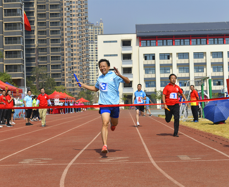 《向前沖!》(集團(tuán)辦公室 吳靄濤)圖片說明:2019年職工運(yùn)動會上,接力比賽隊(duì)員正在全力沖刺終點(diǎn)。