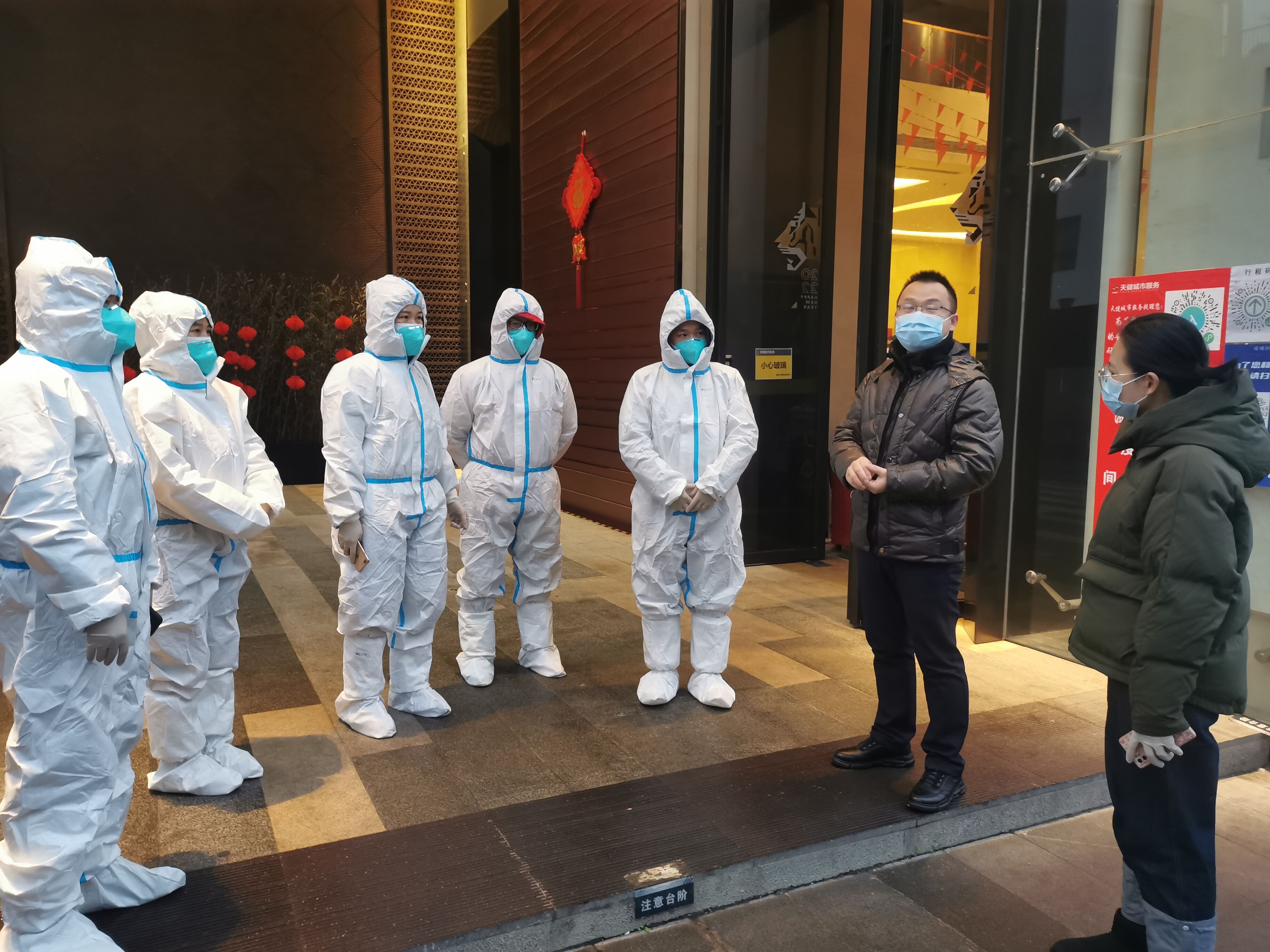 “您好!我們是疫情防控工作人員,由于在疫情排查過程中發(fā)現(xiàn)您的健康碼處于紅碼狀態(tài),因此要對您實行居家隔離措施,我們現(xiàn)在將在您的門口外安裝隔離門禁,請您按防控要求進(jìn)行居家隔離等待上門核酸檢測?!睘樽龊靡咔榉揽毓ぷ?,保障群眾生命安全,有效控制和降低新冠肺炎疫情傳播風(fēng)險,切實落實常態(tài)化疫情防控工作的各項措施,2月10日,綠港集團(tuán)迅速行動,配合社區(qū)工作人員對小區(qū)的居民進(jìn)行掃碼排查,并對排查出的黃碼、紅碼人員實行居家隔離措施。每到一戶,綠港集團(tuán)的工作人員針對居民的疫苗接種情況、家庭成員信息、近期出行軌跡進(jìn)行詳細(xì)摸排,認(rèn)真開展“三碼聯(lián)查”、測溫登記工作,從嚴(yán)從細(xì)防范疫情輸入。同時向居民宣傳疫情防護(hù)相關(guān)常識,告誡大家出門記得佩戴口罩、勤洗手多通風(fēng),盡量避免去人群聚集場所,關(guān)注官方權(quán)威發(fā)布,做到不信謠、不傳謠。